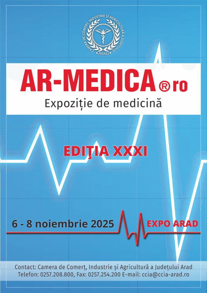 În perioada 6 – 8 Noiembrie 2025, la Expo Arad se desfășoară AR-MEDICA, cel mai important eveniment medical din vestul României, dedicat atât profesioniștilor din domeniul sănătății, cât și dezvoltării industriei de echipamente și aparatură medicală, consumabile și instrumentar, medicină naturistă și alte servicii medicale, reprezentând cadrul ideal în care tehnologia și practica medicală se întâlnesc pentru a oferi soluții inovatoare în domeniu.